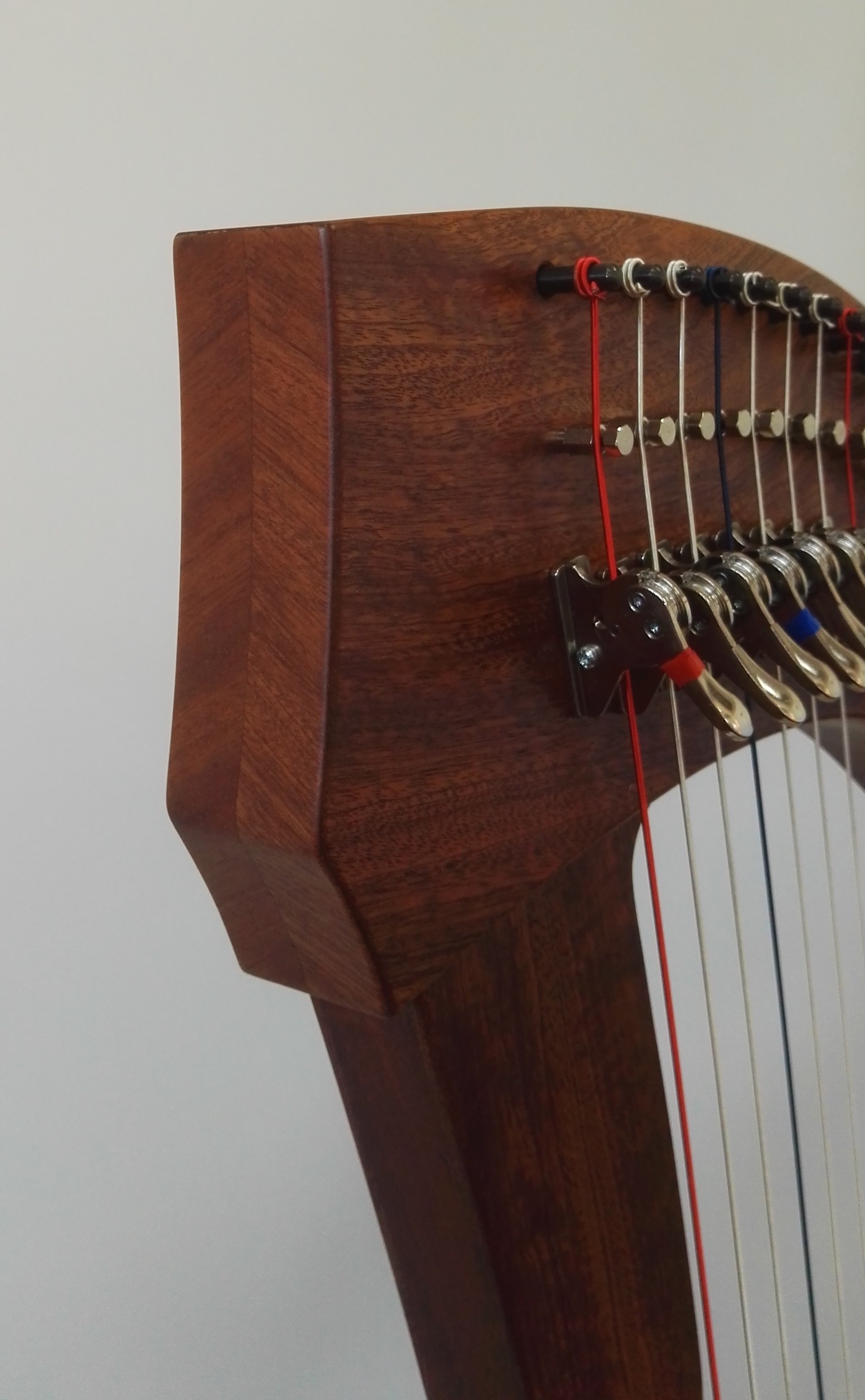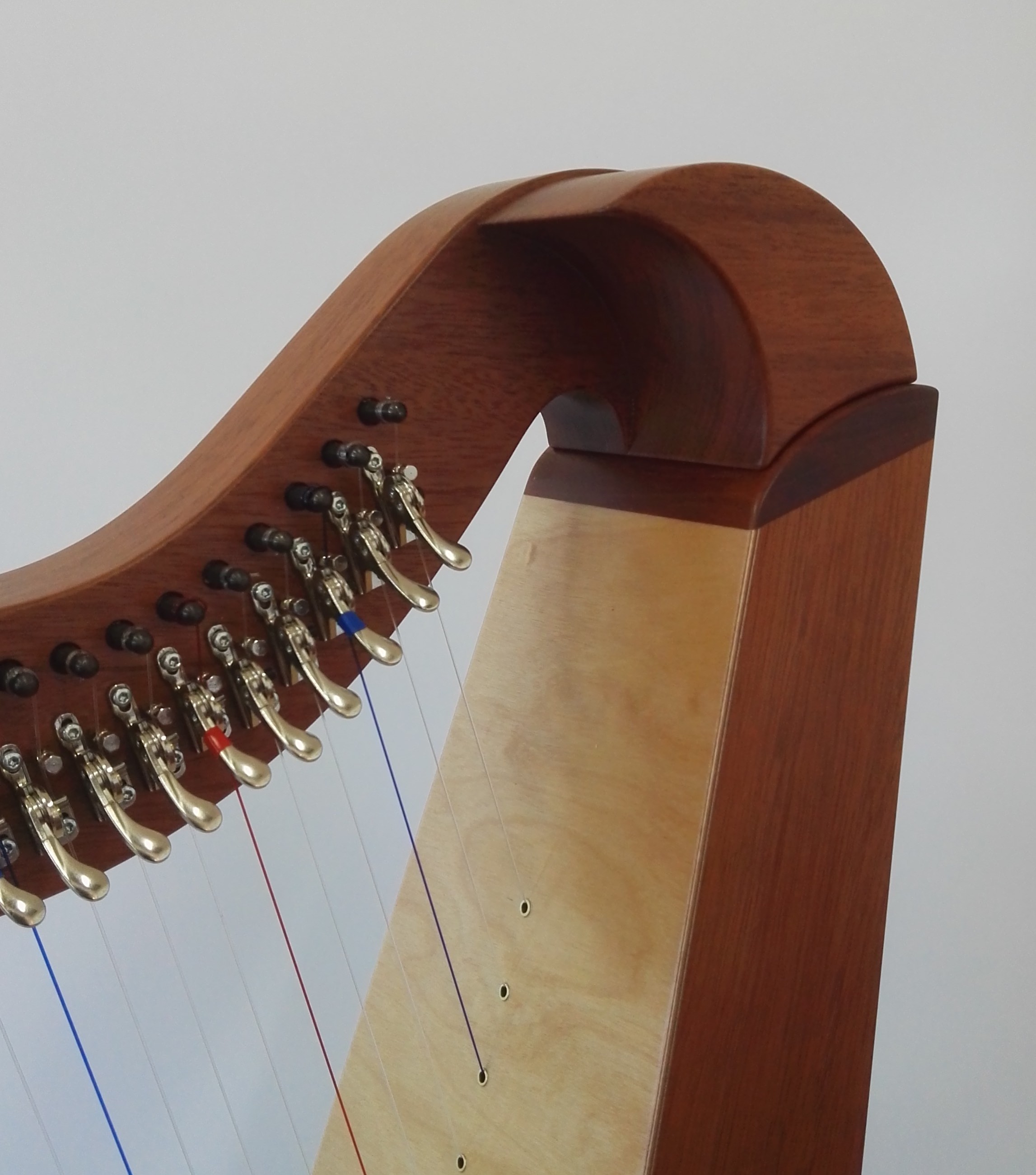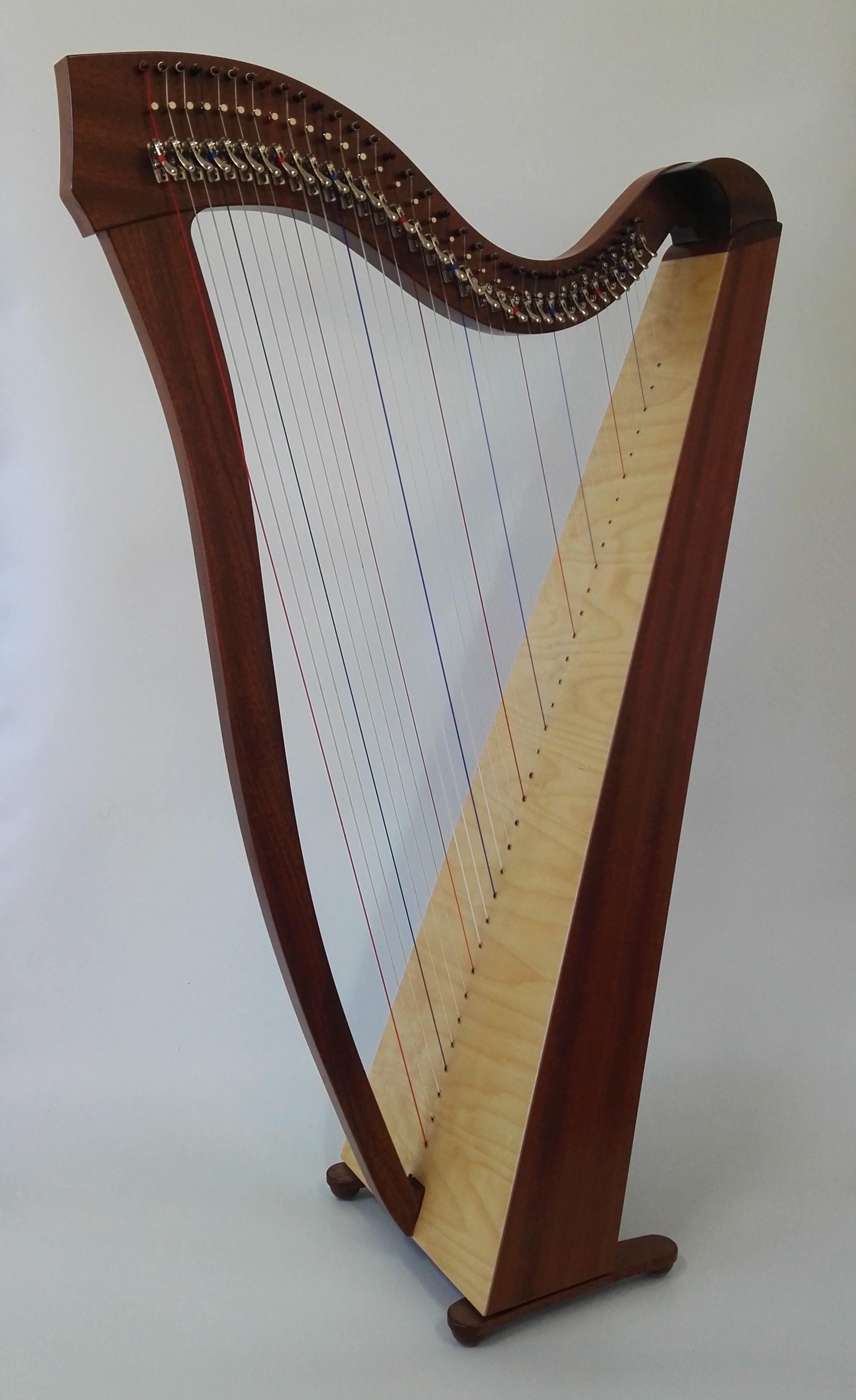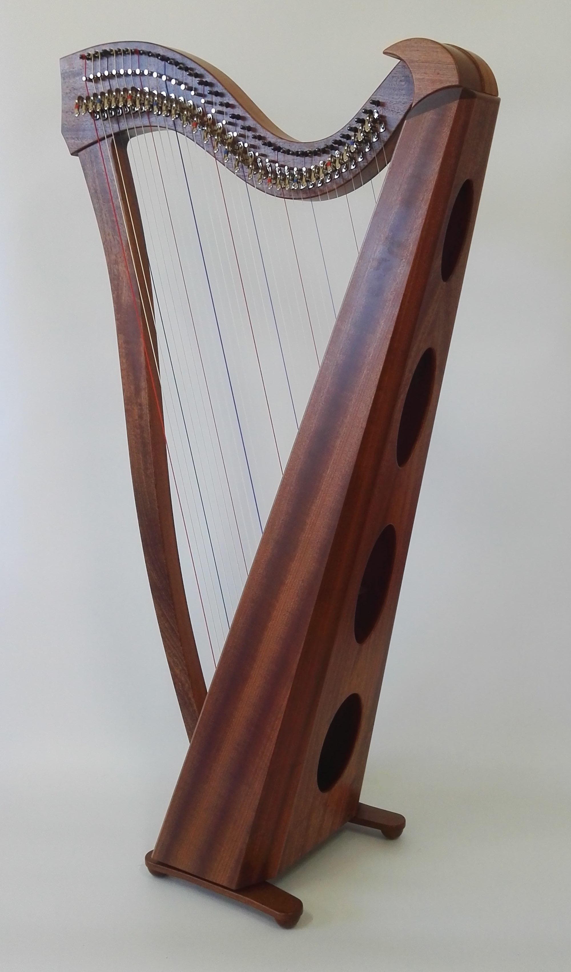 Available in 2 versions, Heron 34 Standard made from Sapele Mahogany, and Heron 34 Special Edition made from Genuine Honduras Mahogany. Apart from the difference in woods used the harps are identical in all other aspects with the Honduras version having a slightly richer tone with a bit more sustain, and also around 1kg lighter in weight.